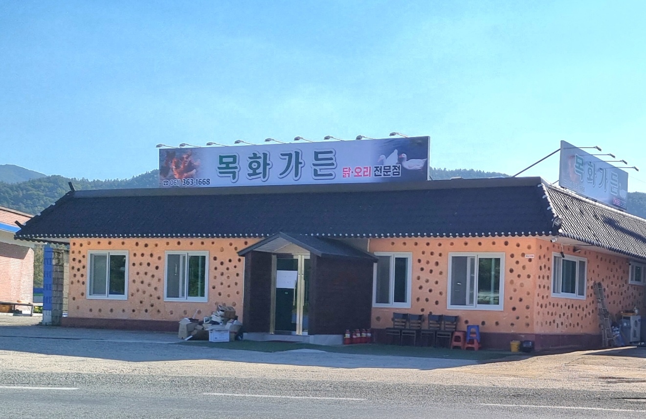 메뉴 돌판구이 오리로스 한마리: 65,000원 엄마손맛 오리탕 [40분전 예약필수]: 65,000원 돌판구이 오리로스 반마리: 35,000원 돌판구이 오리양념구이 반마리: 35,000원 돌판구이 오리양념구이 한마리: 65,000원 돌판구이 묵은지 삼겹살 1인분: 16,000원 오리 전골 中 [예약판매]: 53,000원 주소 입면로 163-10 쌍방죽가든 찾아가는 길 백련저수지와 옥관기안CC 사이의 쌍방죽 가든에 주차 하시면 됩니다. 전화번호 061-363-0592 영업시간 21:00에 영업 종료 편의 단체 이용 가능,포장,예약,방문접수/출장,남/녀 화장실 구분,대기공간,간편결제,주차,방문자 리뷰 간단 리뷰 오리양념불고기가 맛있습니다. 재방문 의사 삼겹살 먹엇는데 맛잇네요 반찬도 맛잇어요 |